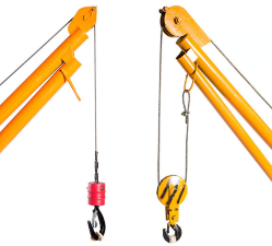 同一款小吊機其實是有兩種起重方式的,也就是單吊和雙吊。有留意觀察過的朋友應該知道在小吊機吊臂接近末端處的下方位置是焊有一個吊環(huán)的,很多人不知道這個吊環(huán)的作用是什么,其實它就是用來完成雙吊的連接固定點。